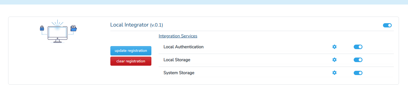 which returns the path needed to access that service or integrator config screen. The integrator can also now publish their own routes, thus allowing for their own settings system with their own controllers, etc. This will make it easier for third parties (again, me) to create their own setting pages and logic independent of my system. It also mean that I had to build an integration screen and config area. The Integration screen now also allows me to re-register the integrators, thus moving he functionality of the artisan command to the actual web.