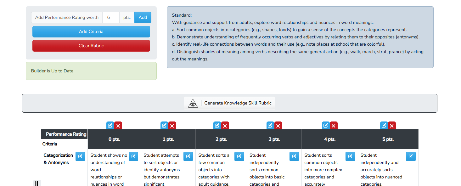 Note that I coded the above with the possibility of allowing users access to the system AI if desired. This is not a requirement, simply a way I chose to develop this so users can share AI. In practice, there could be licensing issues that might prevent this from happening, but I wanted to showcase the ability. Once the integration happened, I figure I would add a hook to be able to create rubrics through AI. So now, when creating rubrics, you will see this button: